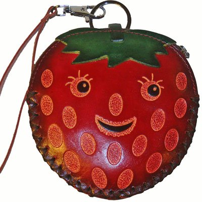Very cute Strawberry Pattern with beautiful color Embossed on both side. It is an absolutely collectable item. The Coin Purse use a Zipper for it's closure. Also, it easy to attach to oyher bag use the secure clip. --- Measurements Approx: 4.5" (L) X 4.5"(W) X 1.0" (D)-- Leather Strap Approx: 9.0 in. (Hang on with a split key ring) and Drop in the side is 6"
